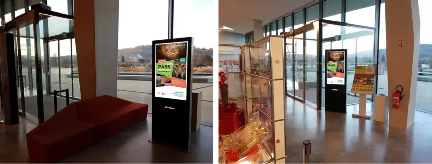 Ellipse Affichage Aquitaine a implanté dans le hall d’entrée et la boutique de Lascaux IV deux totems équipés de dalles numériques 48 pouces. Ce nouvel équipement valorise votre communication dans ce site ultra moderne.